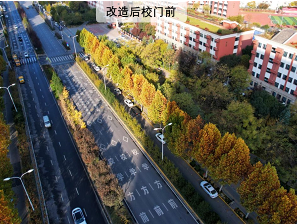 优化效果:改造后过往车辆行车速度得到压降,安全停车视距得到保障,学生过街秩序大幅改善。