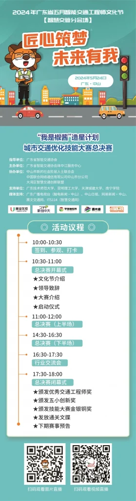 2024年5月24日,“匠心筑梦·未来有我”智能交通工程师文化节“智慧交管”分会场活动将在广东中山举行。