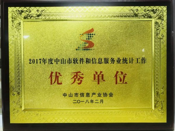 振业优控荣获2017年度中山市软件和信息服务业统计工作优秀单位