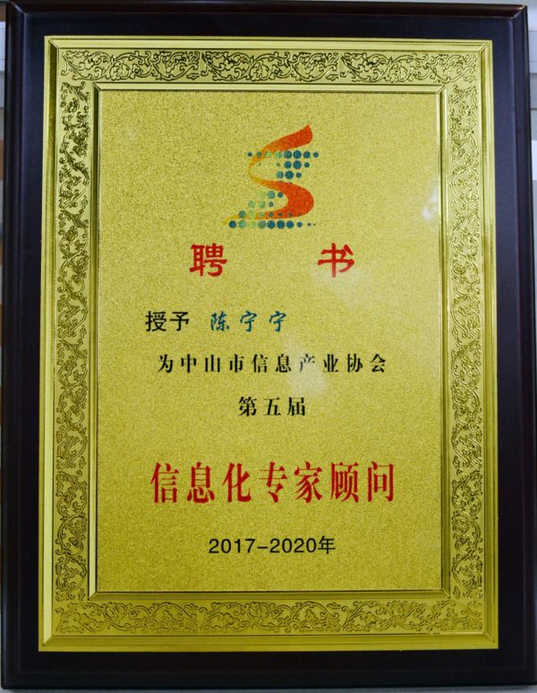 振业优控CEO陈宁宁博士受聘为中山市信息产业协会第五届信息化专家顾问